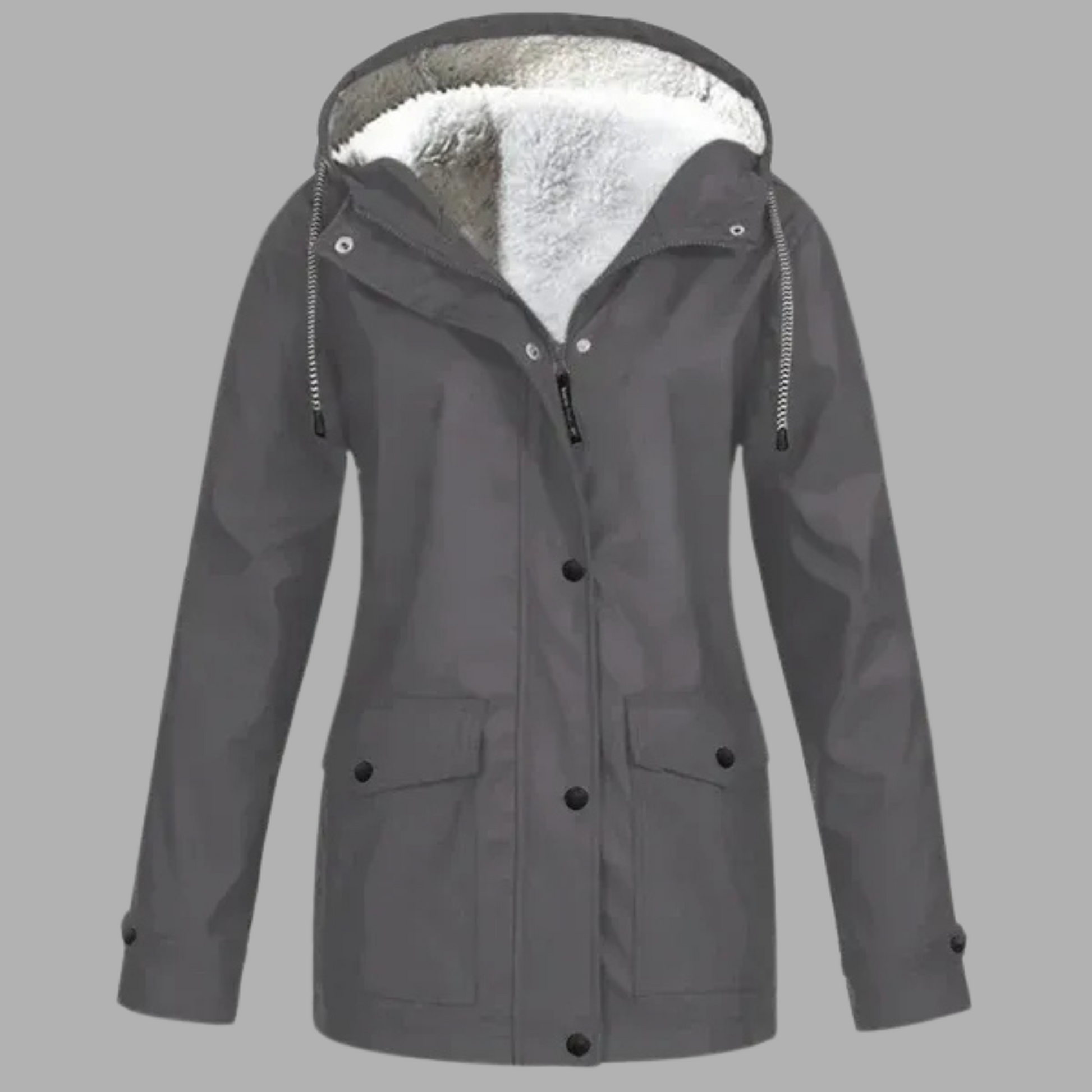 Stine | Termisk fleece-regnjacka – För dig som hatar att vara kall och blöt. Kalla, regniga dagar? Vi vet hur det känns. Stine ger dig värme, stil och trygghet – utan att kompromissa med skandinavisk design. Mjuk fleece värmer kroppen, medan ett vattentätt skal skyddar mot vind och väder. Du behöver inte välja mellan praktiskt och snyggt – den här jackan passar lika bra för en skogspromenad som för stadens gator.